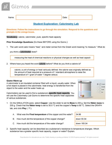 Read Online Student Exploration Calorimetry Lab Answer Key PDF Kobo BookBoon